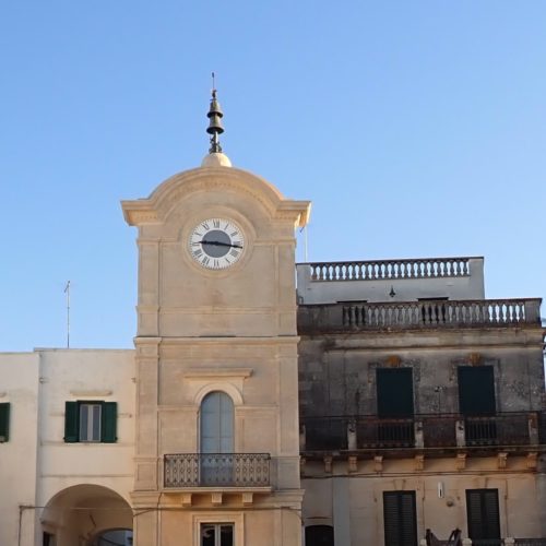 La Torre dell’Orologio di Cisternino, situata nella piazza del paese (‘a chjazze d’u ‘llorge),